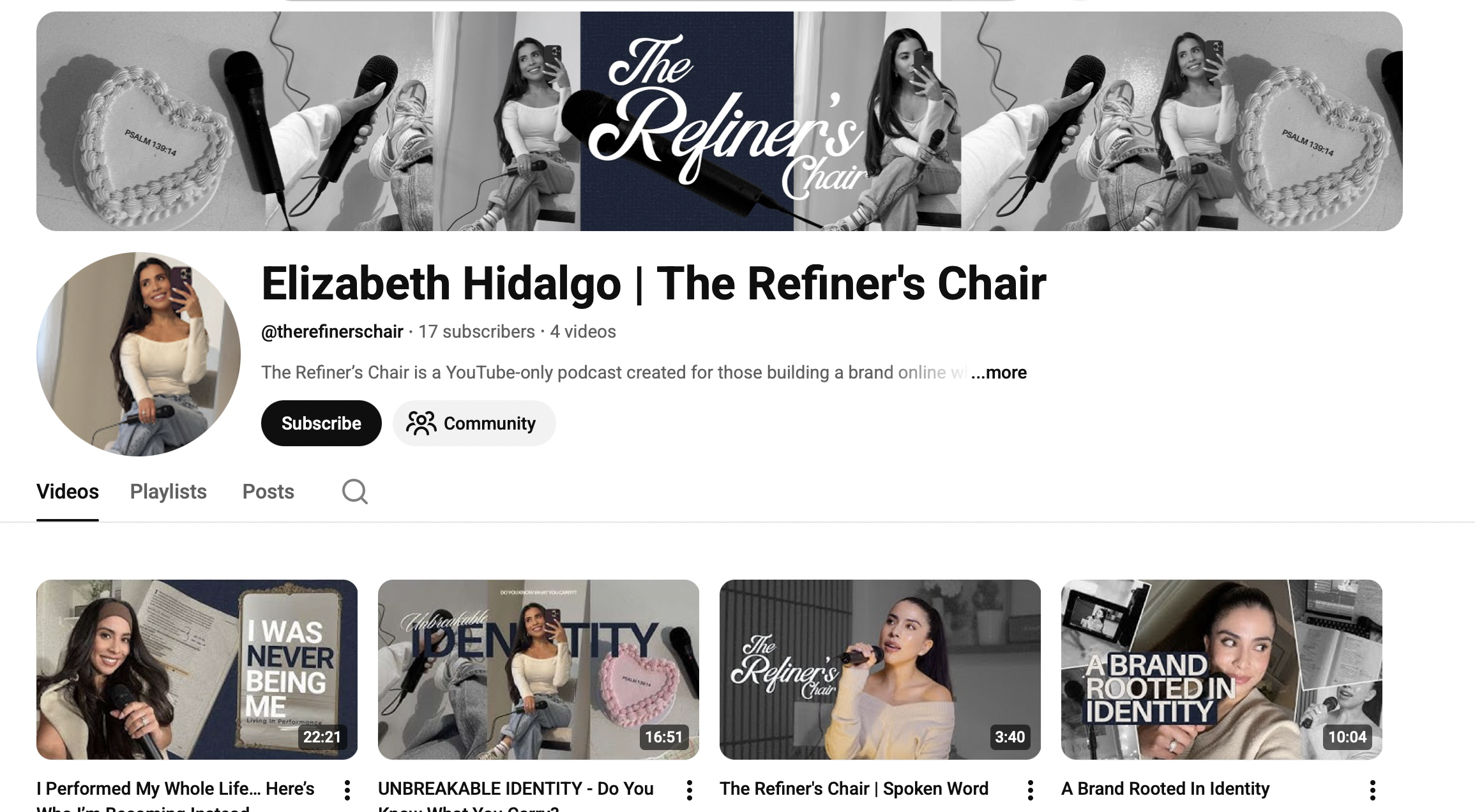 Elizabeth Hidalgo is the Founder of Rise The Brand Agency and the voice behind The Refiner’s Chair, a YouTube podcast centered on walking in your identity in Christ.